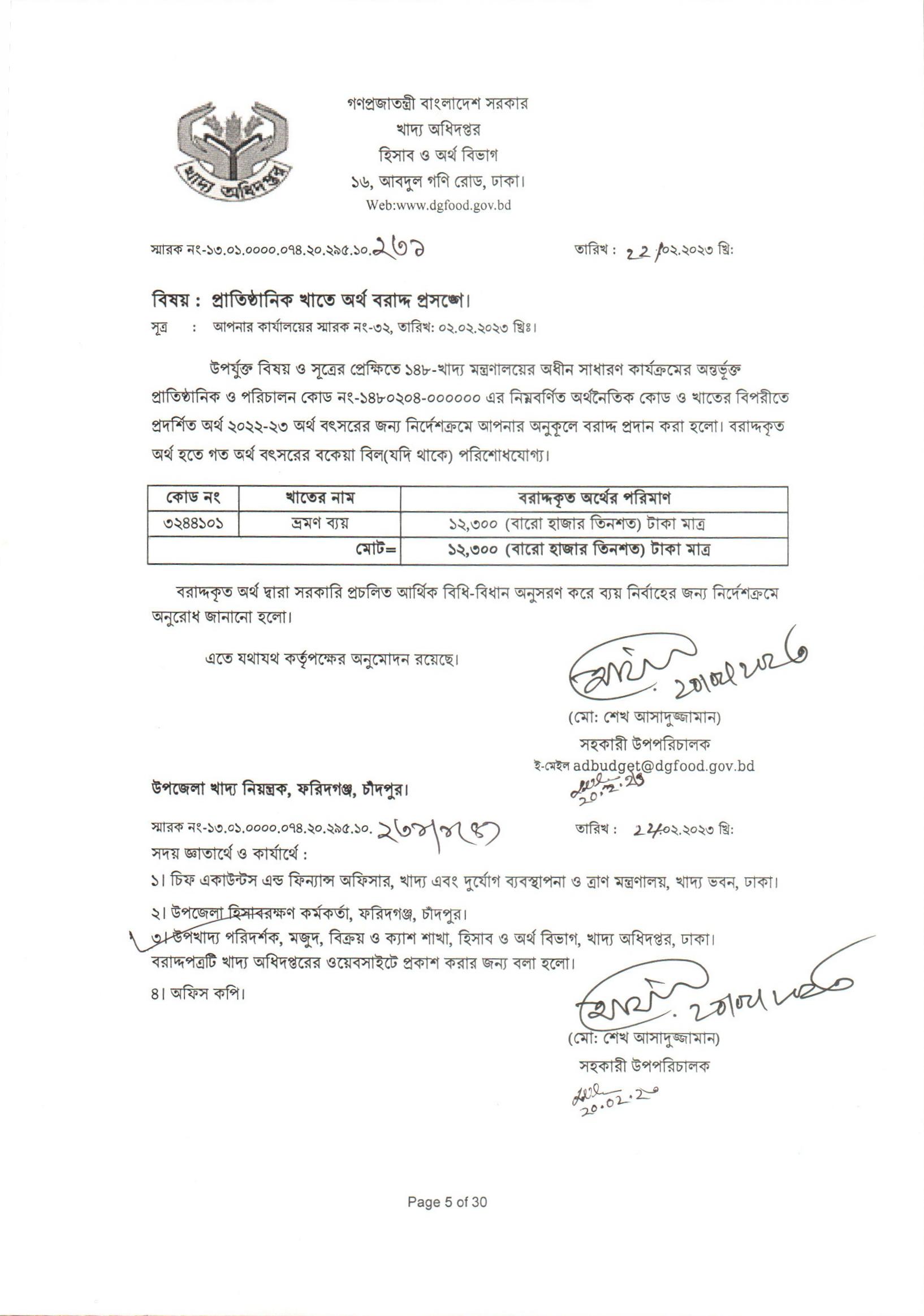 উপজেলা খাদ্য নিয়ন্ত্রক, গংগাচড়া, রংপুর। নং-১৭০, তাং-০৫/০২/২৩